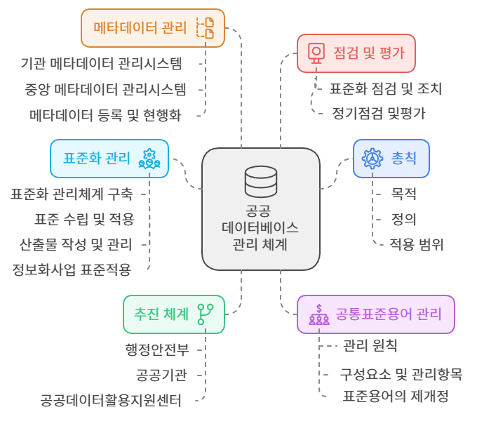 참고로, "공공기관의 데이터베이스 표준화 지침"은 공공기관이 데이터베이스의 생산, 운영, 개방 각 단계에서 준수할 표준화 체계를 규정하고 있다.