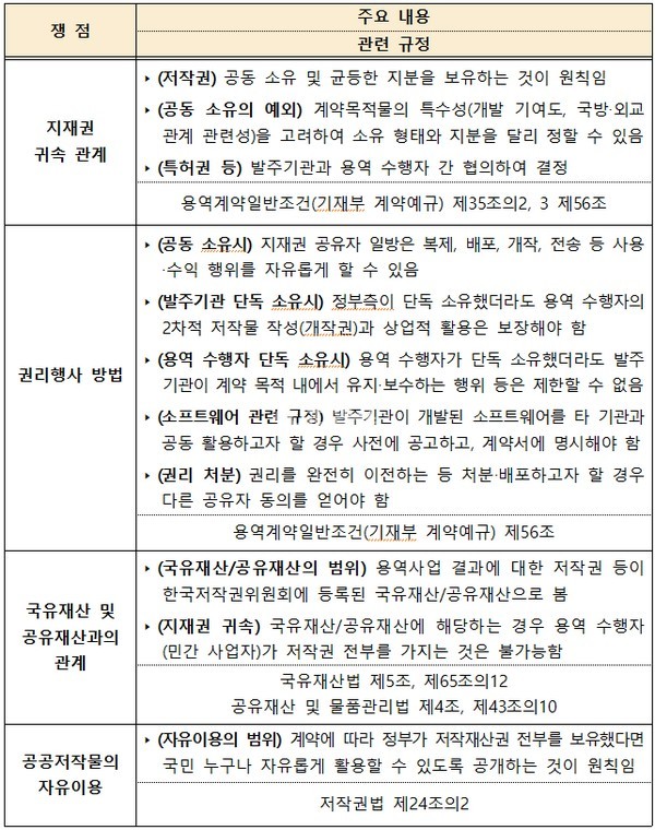 기획재정부 계약예규 "용역계약일반조건"에 따른 지식재산권 귀속 관계는