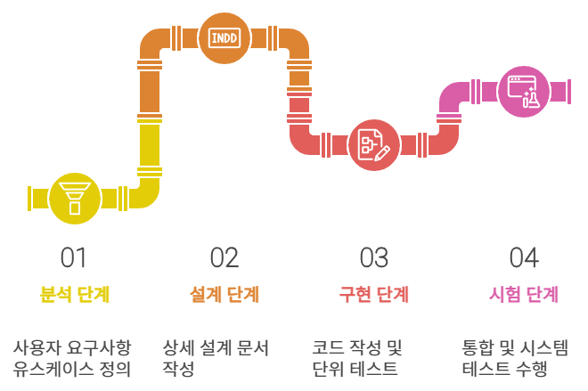 "분석 - 설계 - 구현 - 시험" 단계별 산출물은 다음과 같다.