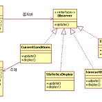 Observer Pattern - 디자인 패턴 참고서적 : Head First Design Pattern 소스코드 다운로드 : http://www.wickedlysmart.com/headfirstdesignpatterns/code.html 패턴 정의 #2 - Observer Pattern 옵저버 패턴(Observer Pattern)에서는 한 객체의 상태가 바뀌면 그 객체에 의존하는 다른 객체들한테 연락이 가고 자동으로 내용이 갱신되는 방식으로 일대다(one-to-many) 의존성을 정의합니다. 디자인 원칙 1. 서로 상호작용을 하는 객체 사이에서는 가능하면 느슨하게 결합하는 디자인을 사용해야 한다. 옵저버 패턴은 주제(Subject)와 옵저버(Observer)에 의해 정의됩니다. 옵저버는 주제에 의존하고..